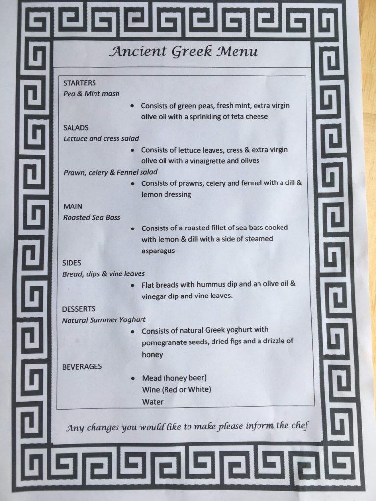 I was so impressed with the effort that went into this evening arranged by Seren in year 5, Not only has she completed the suggested work by Mr Stack this week, she has also arranged to bring ancient Greece to her home for an evening. As you can see from the photos, she not only designed a menu, she also made the entire family dress for the occasion. Absolutely wonderful, well done Seren!